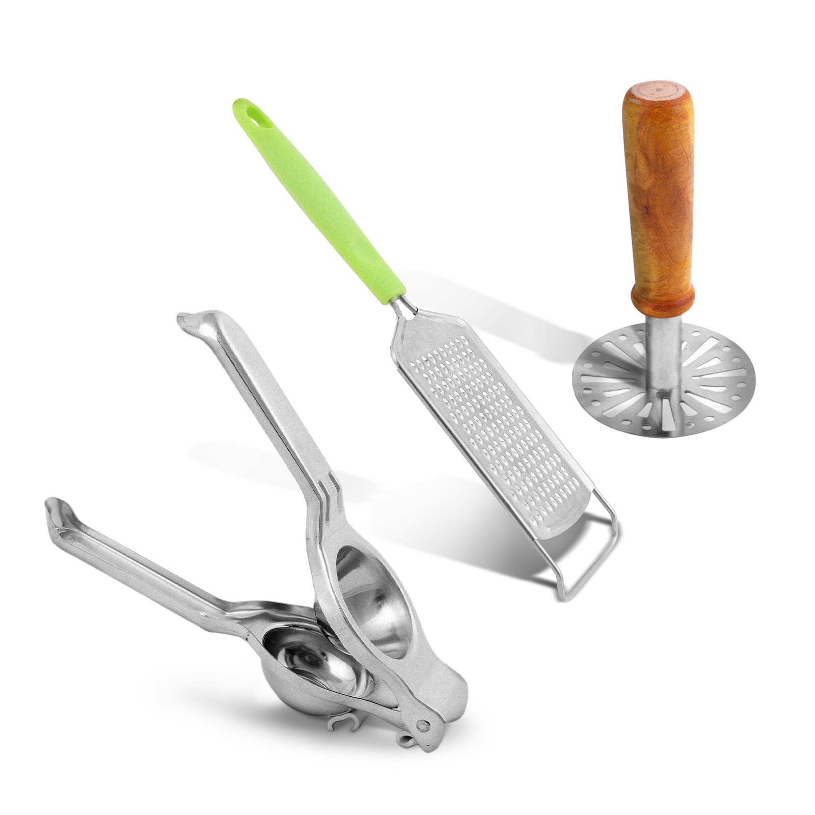 Cheforra Combo Set of Grater, Potato Masher & Lemon Squeezer – Set of 3 | Premium Stainless Steel | Deluxe