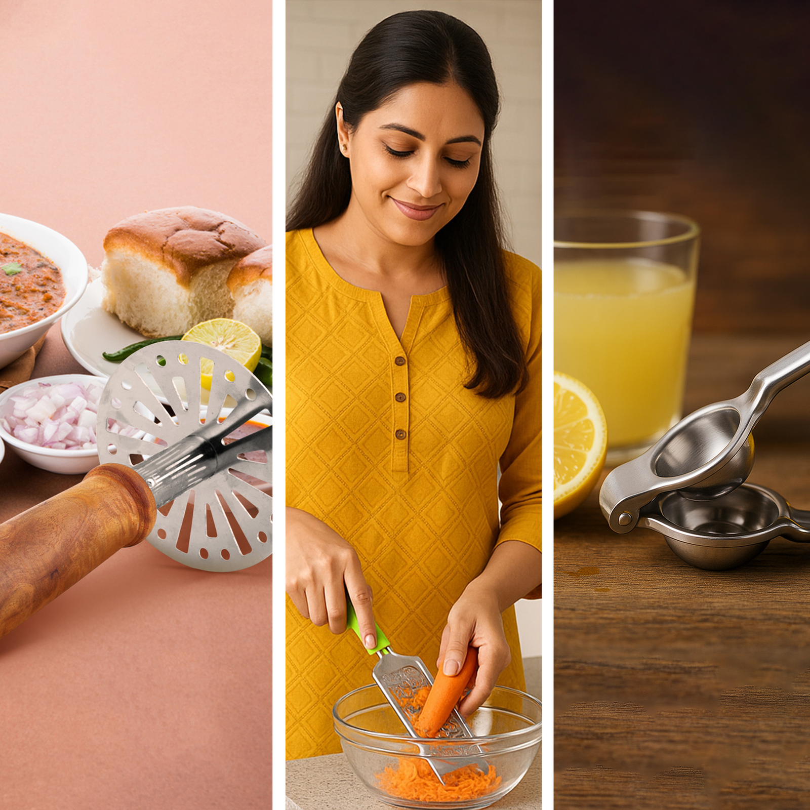 Whether you’re whipping up vegetables for pav bhaji, grating cheese for a pizza, squeezing lemon for salad, these versatile tools delivers precision and ease with every use for professional results at home.
