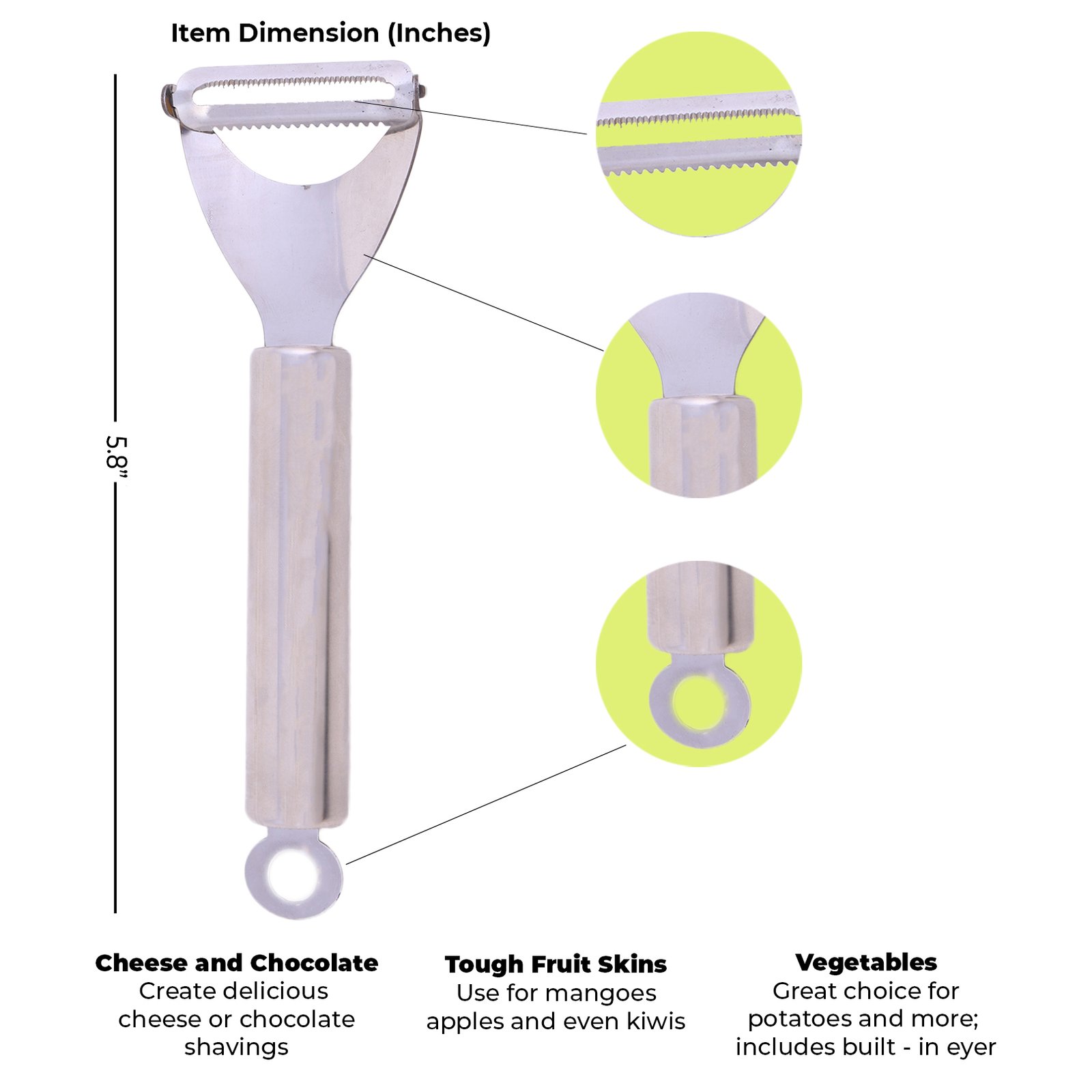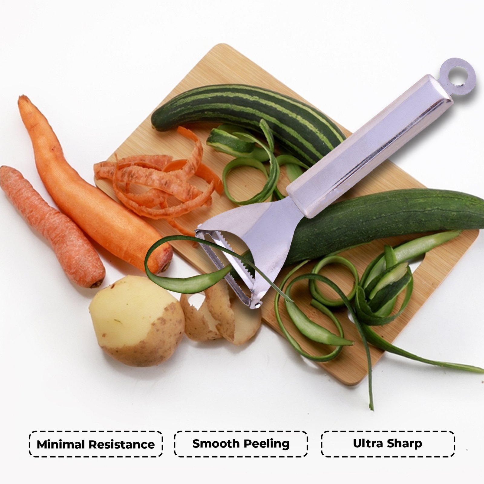 • Razor-Sharp Blade: Crafted from premium stainless steel, the ultra-sharp blade glides through skins with precision, ensuring smooth, thin peels without waste.