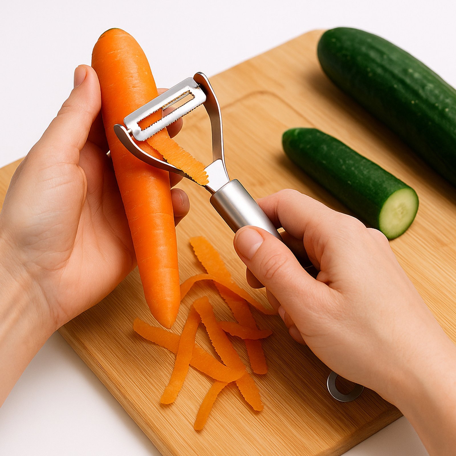 Upgrade your kitchen prep with our Precision Stainless Steel Vegetable Peeler, the ultimate tool for effortless peeling and perfect results.